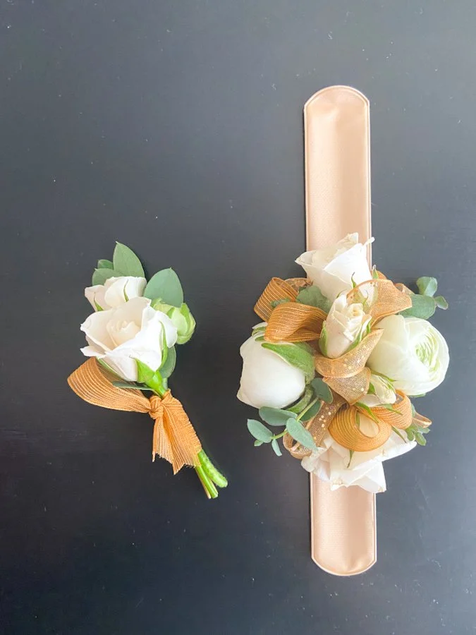 Matching Set of Boutonniere and Corsage: $40